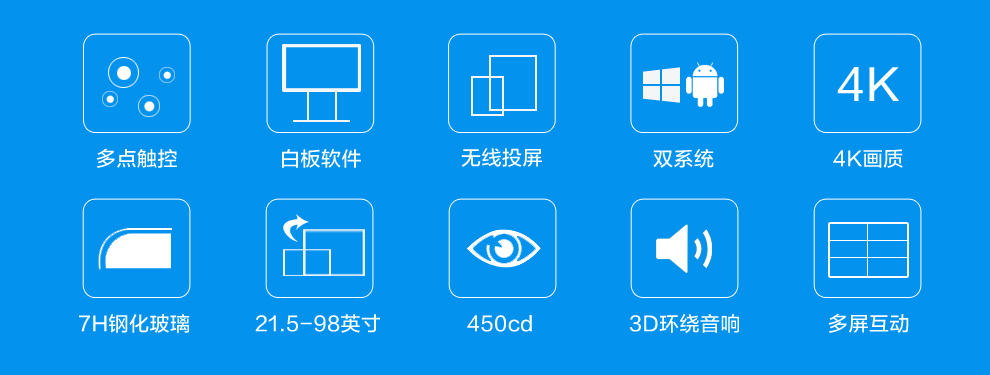 十點(diǎn)觸控,非常穩(wěn)定,會(huì)議白板,無線投屏,遠(yuǎn)程協(xié)作,主板采用安卓工控主板和X86工控主板,安裝win7或者win10 系統(tǒng)。